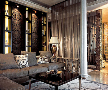 Момент первый - этот стиль больше подойдет для больших комнат с высокими потолками, однако если Вы немного ограничены в пространстве, Вас может спасти большое количество отражающих поверхностей и зеркал. Вообще, в ар-деко игра света и солнечные лучи - как реальные, так и в качестве деталей интерьера - играют большую роль. Освещение не может быть из одного источника, оно должно быть разным, многоступенчатым, сочетать и естественный свет, и искусственные лампы, торшеры и люстры.